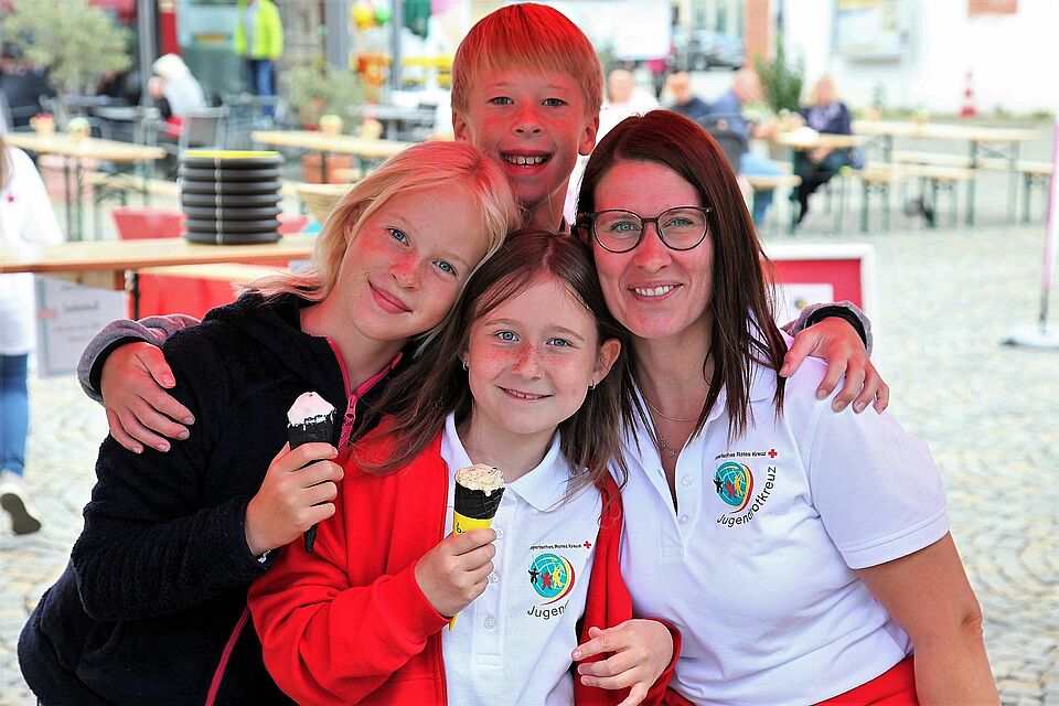 Auf dem Marktplatz und dem Kirchplatz präsentierte sich das Rote Kreuz mit einer bunten Palette seines Angebots aus den Gemeinschaften. Mehr als ein Dutzend Einsatzfahrzeuge, unzählige Helferinnen und Helfer aus Bereitschaften, Wasserwacht, Jugendrotkreuz sowie der Wohlfahrt- und Sozialarbeit hatten Informationsstände aufgebaut, an denen interessierte Besucher sich über die Arbeit der Hilfsorganisation und des Wohlfahrtsverbandes informieren konnten. Des Weiteren gab es Mitmachangebote vor allem für die Kinder und eine Ausstellung von Fahrzeugen und Ausrüstung in vielfältiger Weise. Das BRK-Mehrgenerationenhaus hatte in sein Café-Bistro „Offener Treff“ eingeladen, wo neben Kaffee und Kuchen auch Kreativangebote für Kinder angeboten wurden.