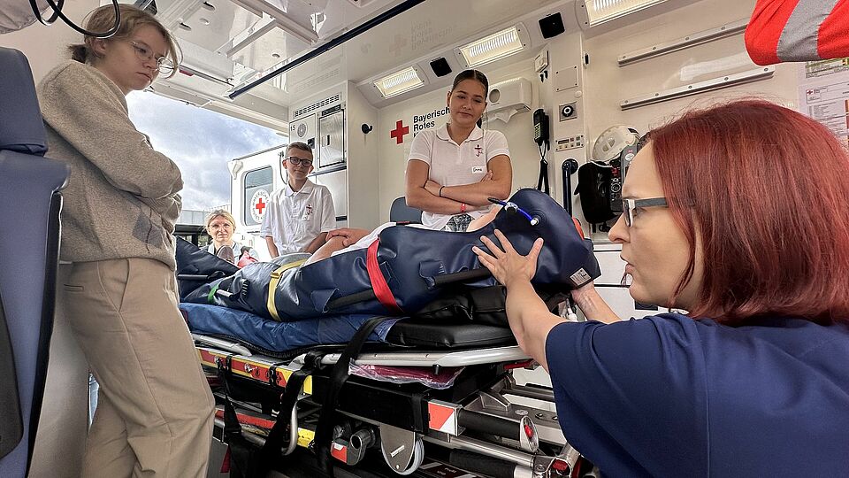 An vier verschiedenen Stationen erhielten die Schülerinnen und Schüler Einblicke in den Rettungsdienst und die Haßberg-Kliniken. Ziel war dabei nicht zuletzt, den Jugendlichen die Arbeit in medizinischen Berufen näher zu bringen und sie im besten Fall für eine Ausbildung in diesem Bereich zu begeistern. Fachkräfte der Haßberg-Kliniken und des Bayerischen Roten Kreuzes standen Rede und Antwort und erzählten aus ihrem Berufsalltag.