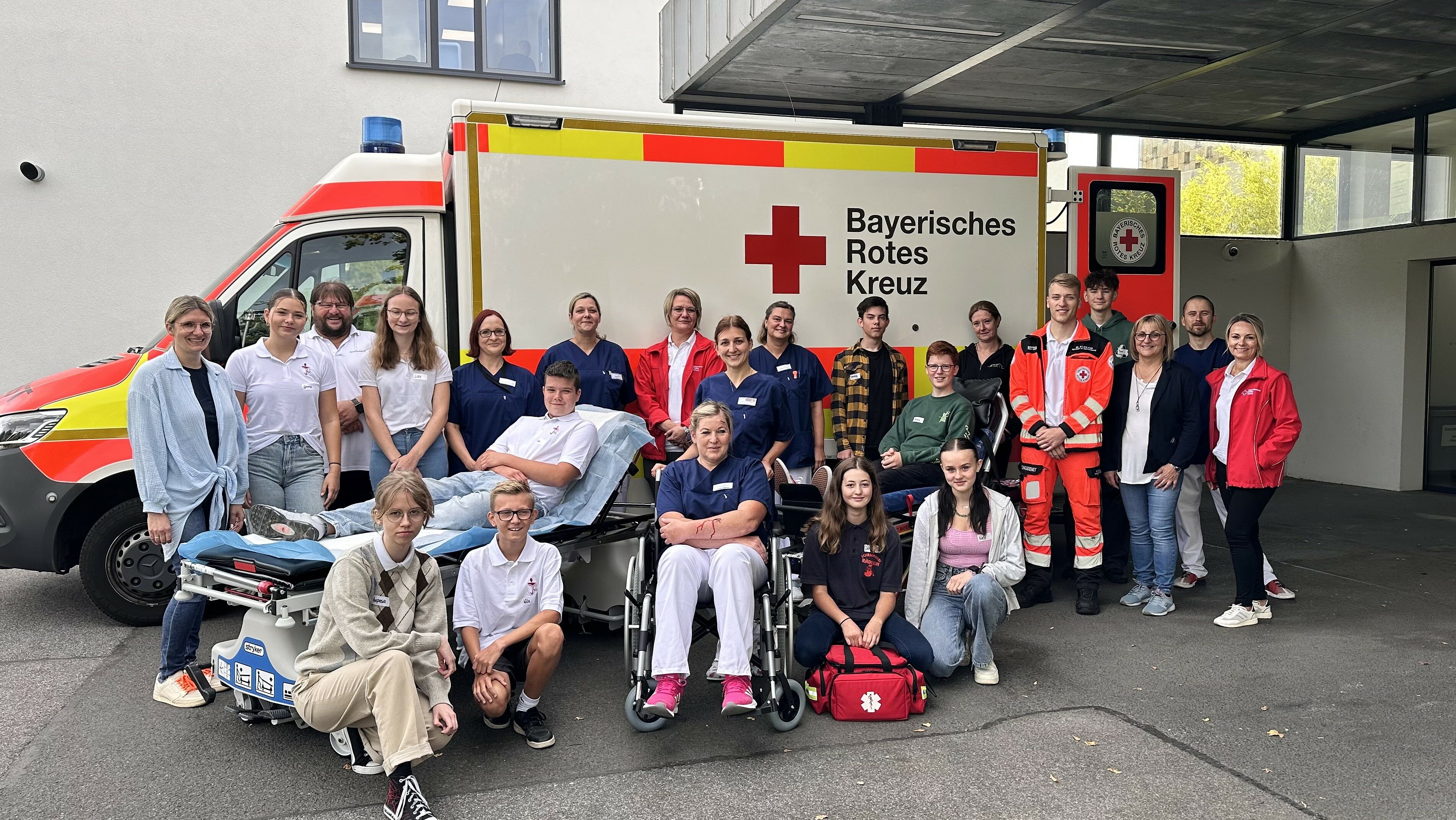 HASSFURT - Das exemplarische Beispiel schildert, wie ein Schulunfall ablaufen kann. Um kennenzulernen, wie nach der Erstversorgung in der Schule anschließend die Arbeit des Rettungsdienstes und des Krankenhauses abläuft, haben die Haßberg-Kliniken, Haus Haßfurt, und der BRK-Kreisverband Haßberge in Kooperation einen Aktionstag für Schulsanitäterinnen und Schulsanitäter veranstaltet. An ihm nahmen am Dienstag (19. September) Schulsanitäter der Hofheimer Jacob-Curio-Realschule und der Dr.-Ernst-Schmidt-Realschule Ebern teil.