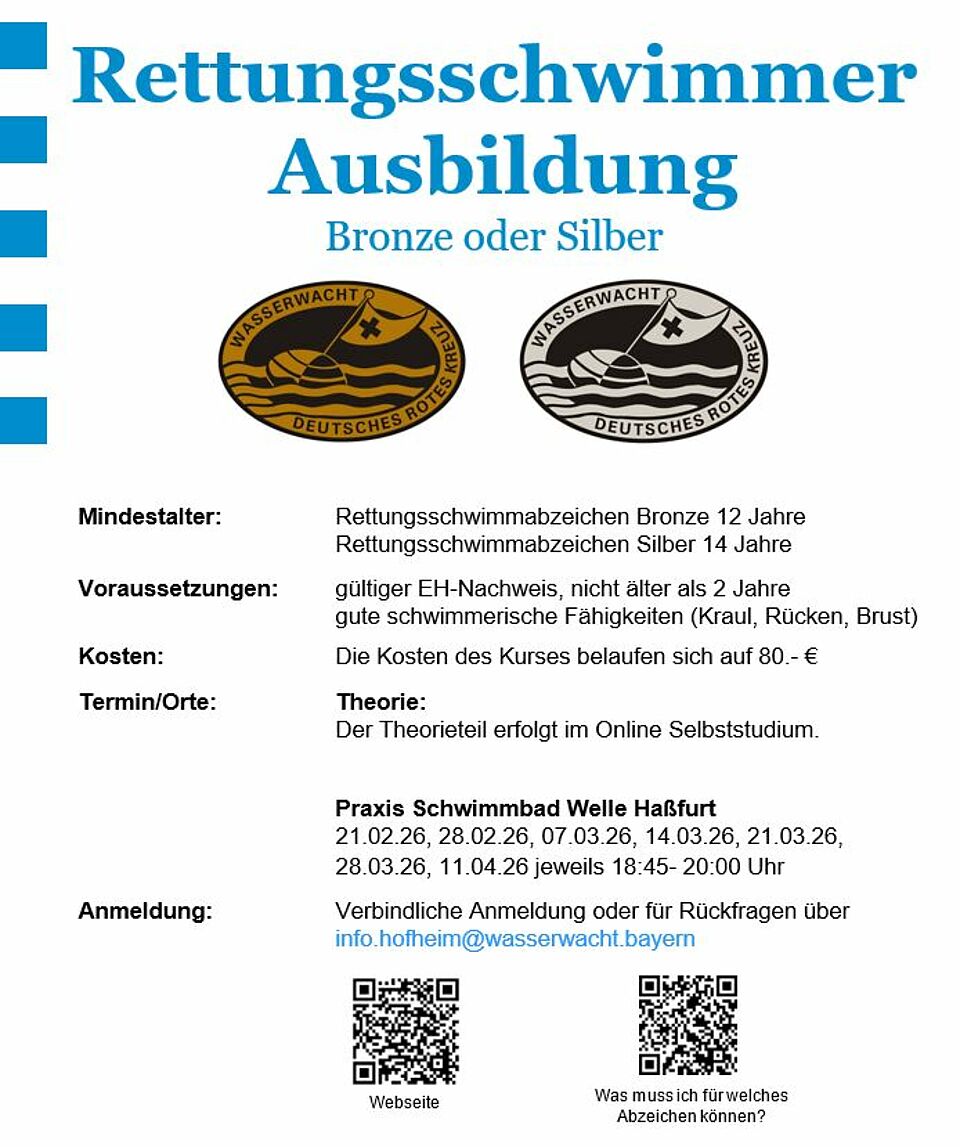 Die Ausbildung zum Rettungsschwimmer ist wie die Erste Hilfe-Ausbildung auch eine Breitenausbildung. Das Deutsche Rettungsschwimmabzeichen gibt es in Bronze, Silber und Gold. Silber ist dabei der Standard, den in der Regel auch jedes aktive Wasserwacht-Mitglied hat. Die genauen Voraussetzungen und Prüfungsinhalte findet ihr hier: